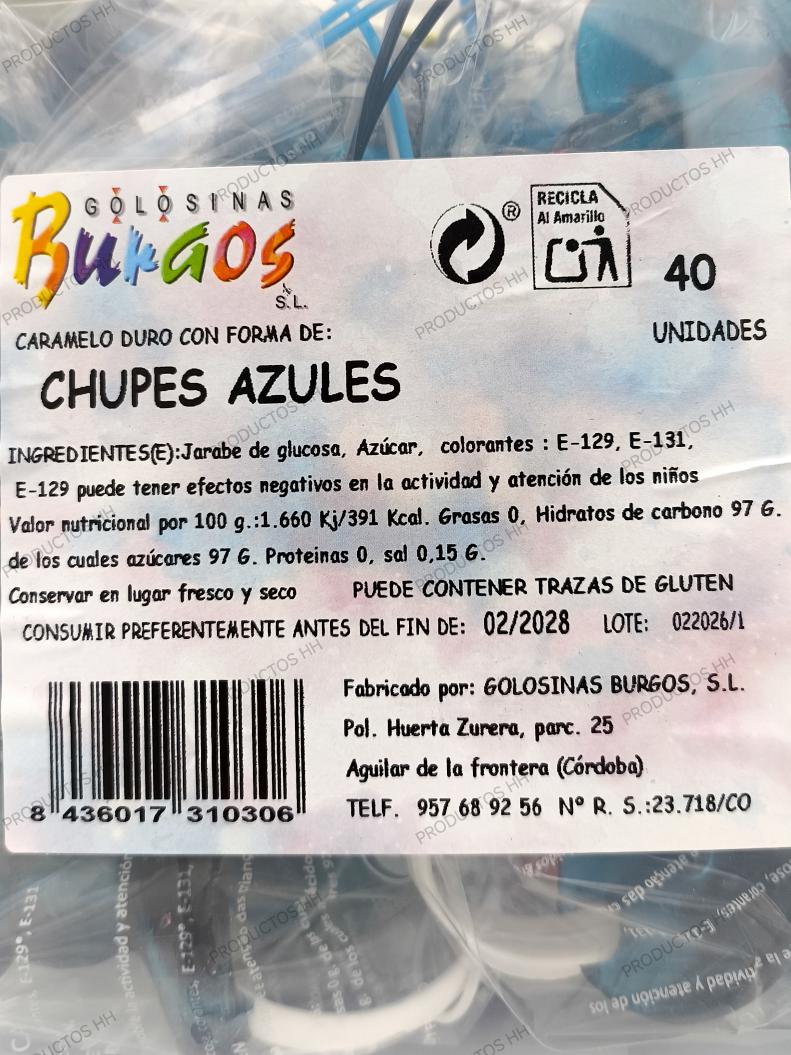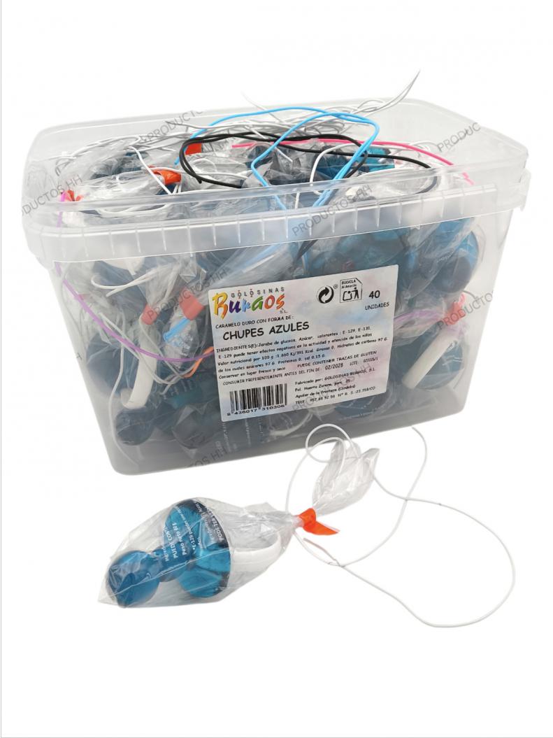 CHUPETE AZUL CARAMELO BURGOS CUBO 40 Uds