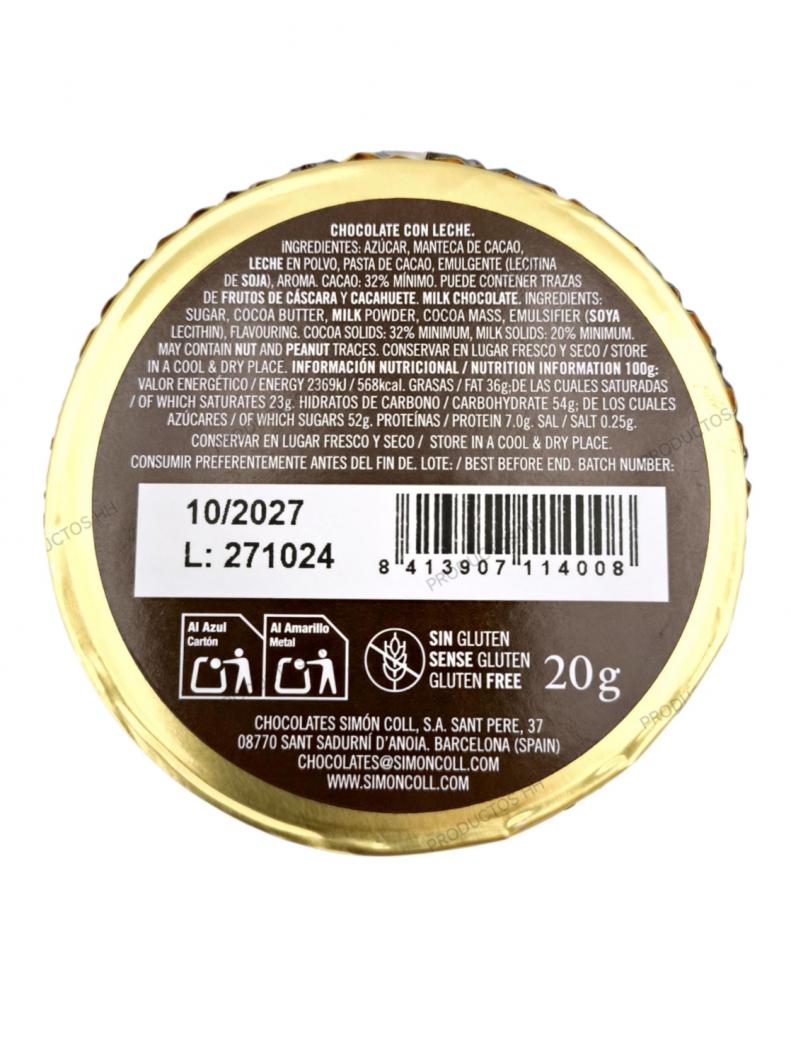 MEDALLONES CHOCOLATE CON LECHE SIMON COLL 68 mm 36 Uds