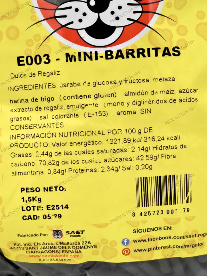 MINI BARRITAS REGALIZ SAET BOLSA 1,5 Kg