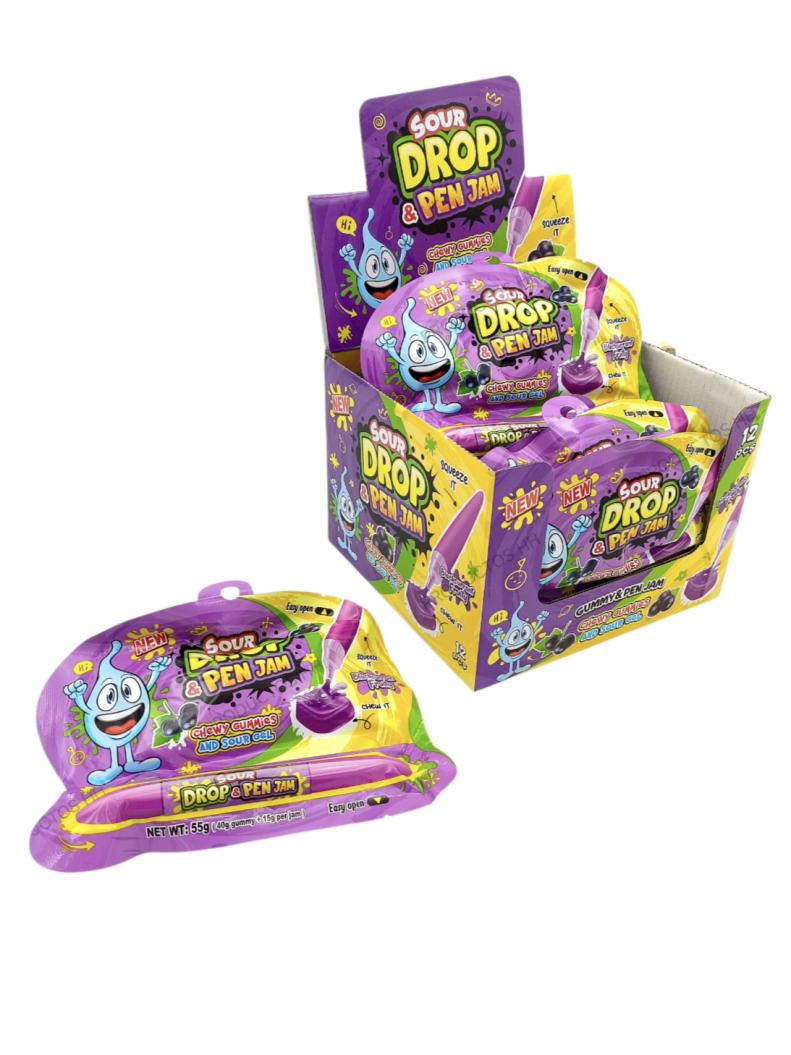SOUR DROP & PEN JAM GROSELLA NEGRA 12 Uds